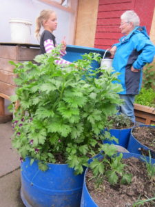We were glad to talk with Kay and Bob again, and see their productive gardens. Of special interest to city-dwellers is their model urban garden – 200 sq metres – bordered by espaliered fruit trees, with the familiar poultry shed and densely-planted productive vegetable and herb bed. But the tiered cages of rabbits and guinea pigs for manure, food and fur were unexpected as were the Soldier Fly farm and the wicking beds under shelter. The quality and size of the celery in the wicking beds was particularly stunning – no rust here!